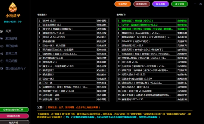 小松游戏盒子整合了全网热门主机游戏资源,涵盖动作、角色扮演、策略等多种类型。无论是经典单机大作还是热门联机作品,均可实现高速下载与自动安装。平台内置智能检测系统,实时扫描游戏环境需求,自动匹配运行库组件,彻底解决游戏启动报错、闪退等问题。
