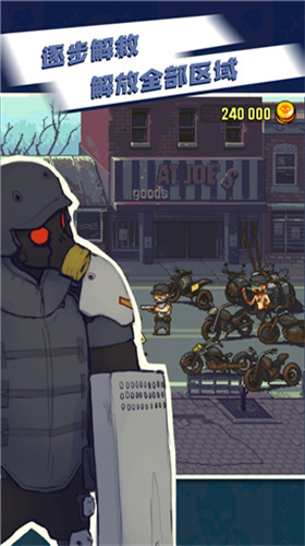 像素艺术完美呈现末日美学,锈蚀的街道路牌与崩坏的建筑物构成压抑的灰色主调,偶尔闪现的霓虹灯箱暗示着往昔繁华。僵尸设计在保留卡通风格的同时加入写实细节,例如辐射变异体会散发荧光绿雾气,机械改造僵尸裸露着齿轮关节。