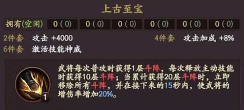 上古至宝套装是输出型宝物的最优选,其神威BUFF与孙权被动技能形成完美联动。当触发生命值提升效果时,不仅能强化持续输出能力,更通过血量增幅显著提升战场存活率,特别适合持久战与多目标作战场景。