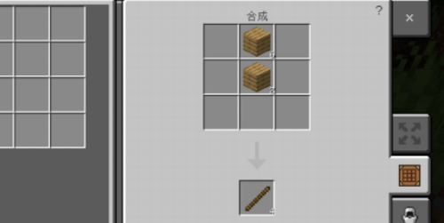 4、摆放工作台后需准备辅助材料。将两块木板竖向排列于合成栏,可获得4根木棍。此材料不仅是剑柄的核心组件,后续工具升级也需要大量消耗,建议一次性制作8-10根储备。