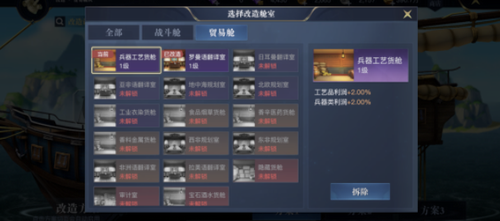 船只建造完成后需针对性改造功能舱室。战斗型舰队建议配置高级火炮舱提升攻击强度,搭配医疗舱增强续航能力。贸易船队则应侧重工艺品货舱与嗜好品舱的改造,前者可提升兵器类商品利润达15%,后者对食品烟草类货物有额外8%收益加成。根据航行目标动态调整舱室配置,可使船只效能最大化。
