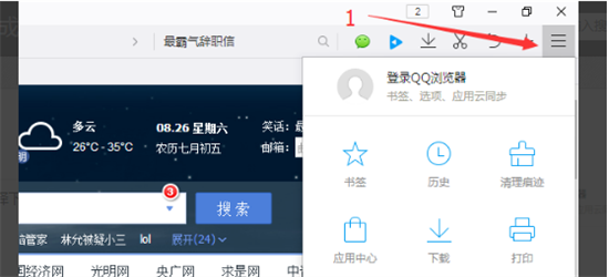 1、启动QQ浏览器应用程序,将光标移动至界面右上角工具栏区域,定位由三个水平线段构成的菜单控制按钮。